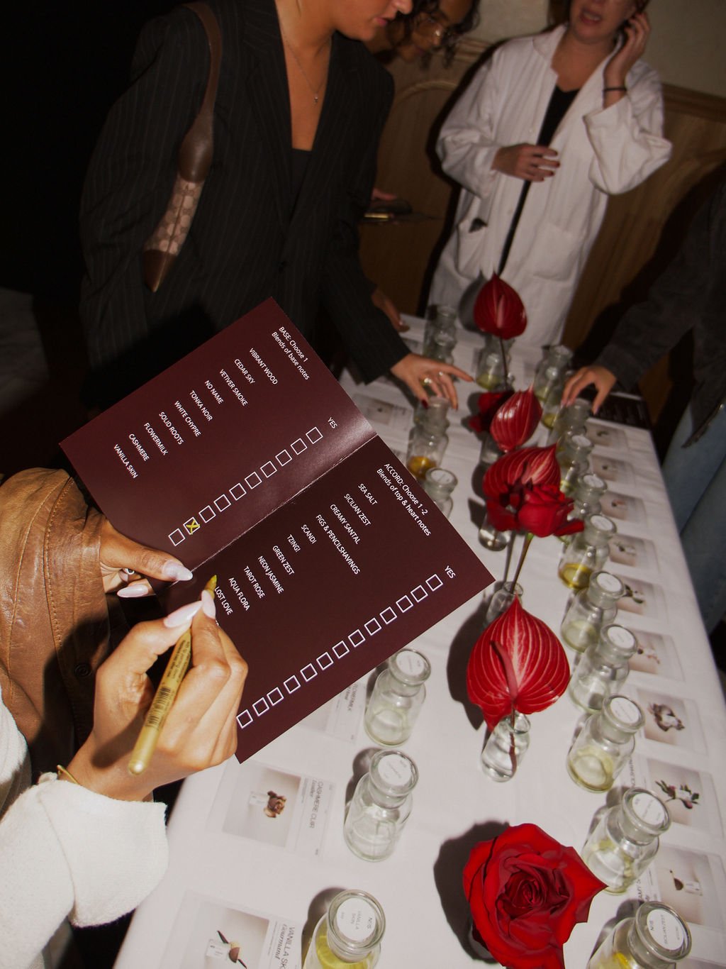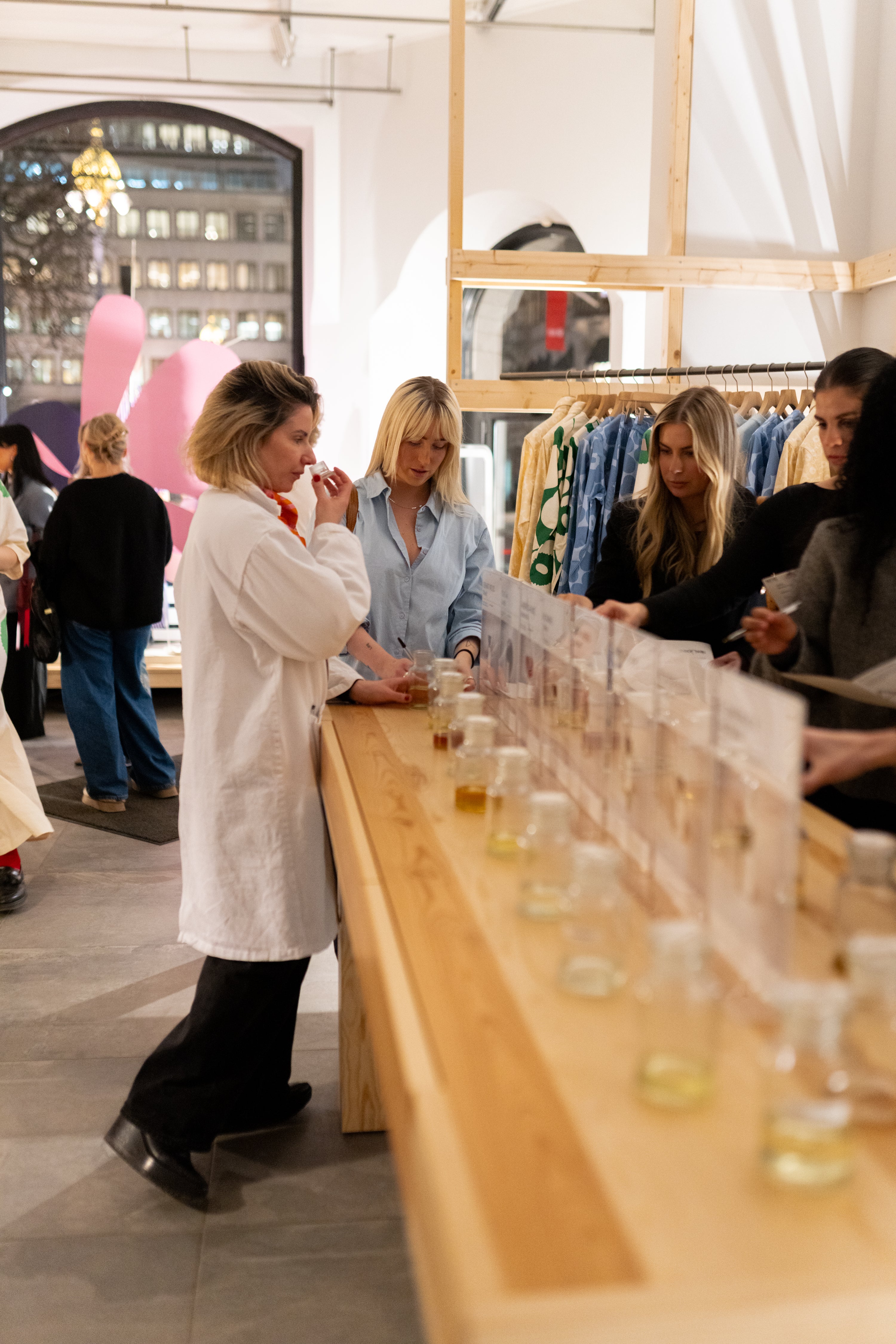 Besökarna får dofta på våra exklusiva doftblends och välja sina favoriter. Våra parfymmakare blandar sedan doften direkt på plats – en unik signatur att ta med hem.